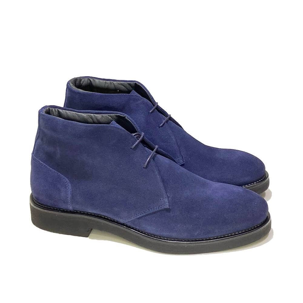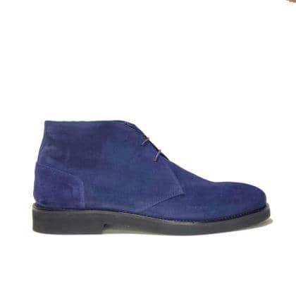 Crafted in Italy from fine blue suede, the boot is a modern chukka boot designed for comfort, versatility, and understated elegance. Its clean silhouette and soft texture make it perfect for both refined casual looks and smart everyday outfits. The boot features a smooth leather lining, a lightweight rubber sole for flexibility and grip, and two-eyelet lacing for a timeless profile. Traditional lasting construction ensures durability and structure. Available for full white label customization—materials, soles, linings, and logos can be tailored to fit your brand's needs. Stylish, lightweight, and 100% Made in Italy, this chukka boot is ideal for contemporary menswear collections.