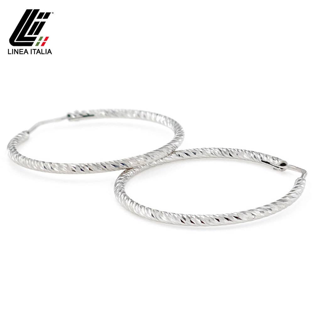 Sterling Silver diamond cut hoop earrings. Entirely hand finished, these jewels are light and comfortable. More measures available. All in Sterling Silver. Hand Made in Italy.