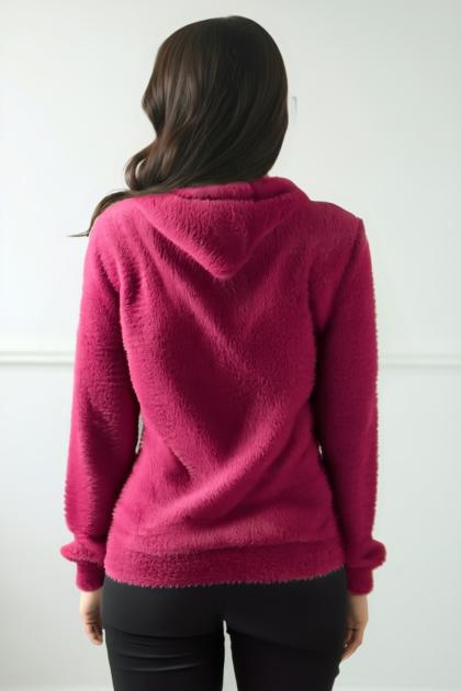 Hooded fur jacket, very soft and warm, with a front zip and bright details for a casual and feminine look.