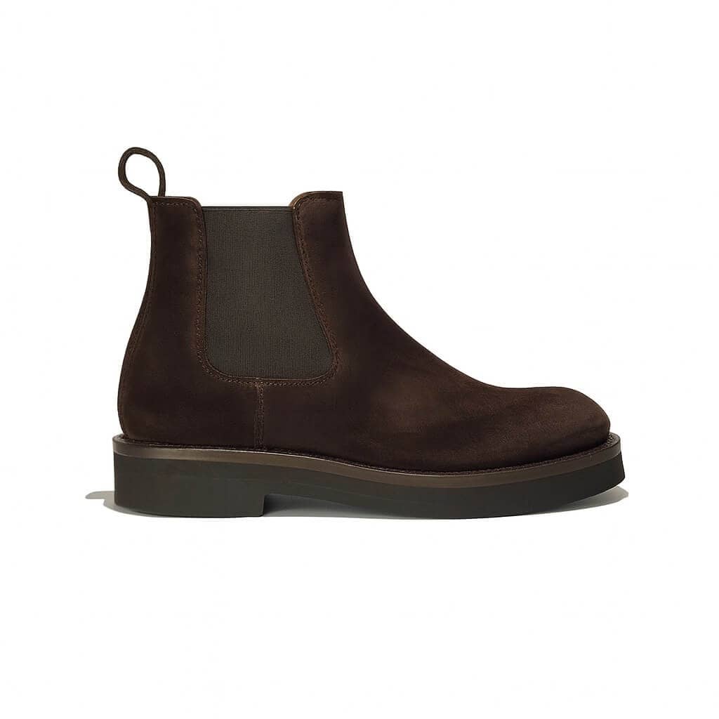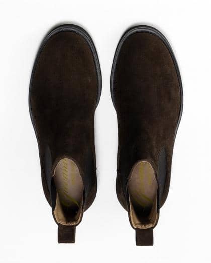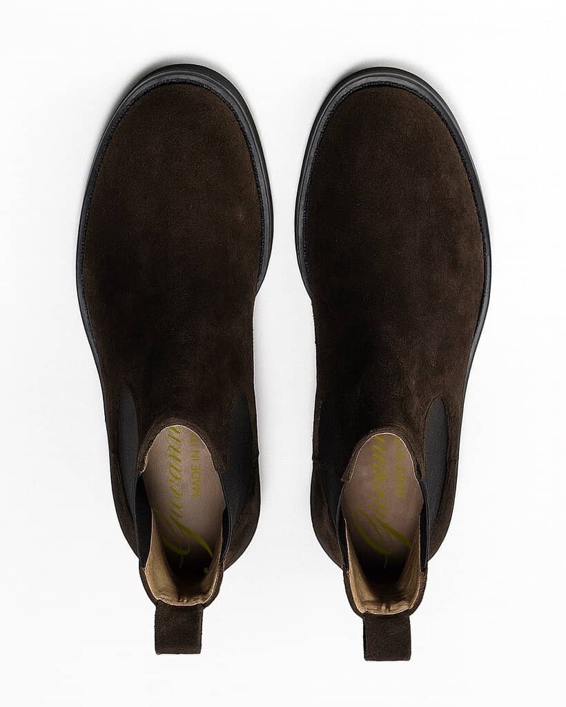 The BT-2270 is a classic Italian Beatles boot crafted in soft dark brown suede and lined in smooth calf leather. Entirely handmade in Italy, this Chelsea-style ankle boot features side stretch panels and a pull tab for effortless wear and sleek comfort. Designed for everyday refinement, the boot is built with traditional lasting construction and set on a durable black rubber sole for excellent grip and wearability. The clean, minimal silhouette pairs easily with both tailored and casual looks. Ideal for high-end menswear retailers, this model is fully customizable through our white label service: materials, colors, soles, and branding options can be tailored to your needs. 100% Made in Italy. Lightweight, elegant, and versatile.