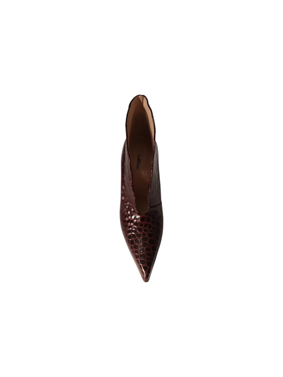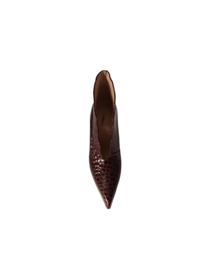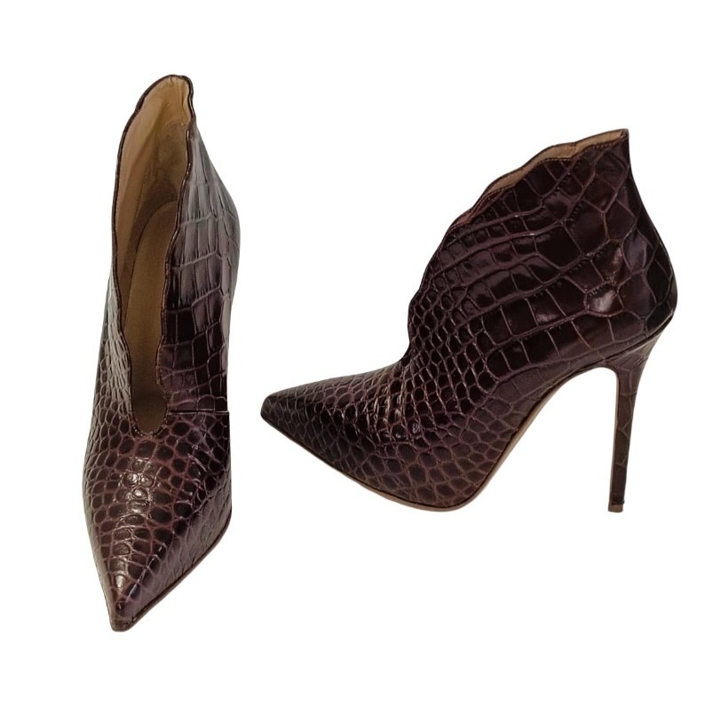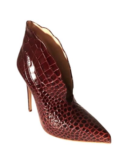 Upper: Red crocodile print calfskin Shape/Heel: Rapid 120 Sole: Natural leather + Natural Lissa Italian artisan product