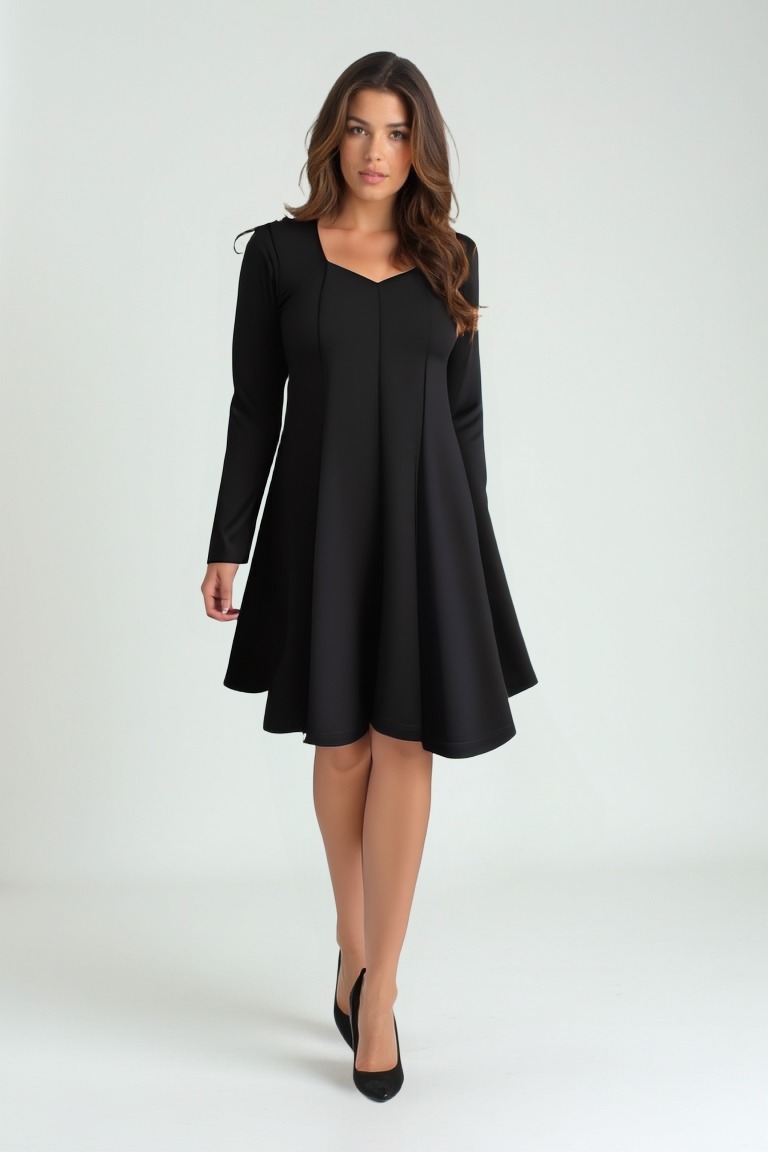 This flared dress in soft Milano knit combines timeless elegance with everyday comfort. Featuring a feminine peplum-inspired cut and V-neckline, it gently follows the body’s shape while providing excellent fit and freedom of movement. The elastic Milano fabric ensures structure and softness, making it ideal for elegant daytime looks or special events. A versatile and refined piece designed for the modern woman who values Italian quality and effortless style.