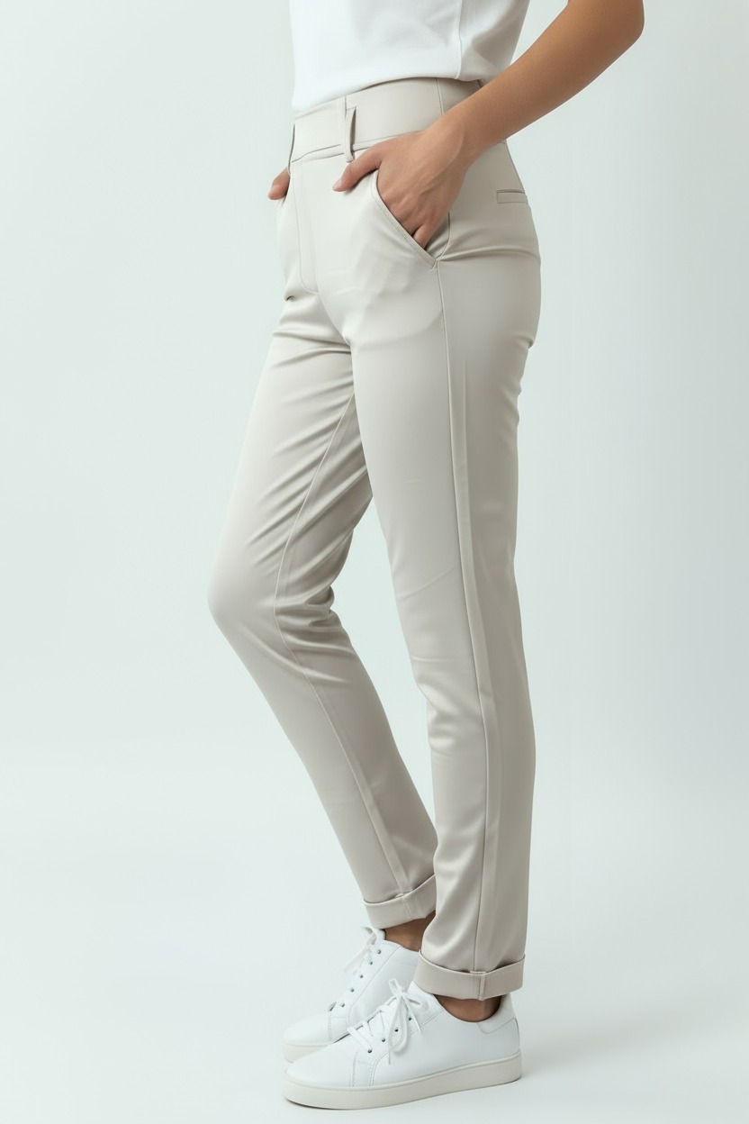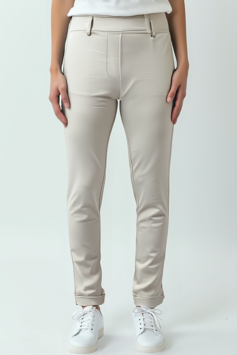 Soft Milano stitch trousers, made from a soft, supportive fabric that flatters the figure while offering maximum comfort. Carefully crafted details include real pockets , a faux fly, belt loops, and a turn-up cuff. The fully elastic waistband ensures a practical and flawless fit. Perfect for any occasion, they combine elegance and comfort with a feminine line that's also suitable for curvy women.