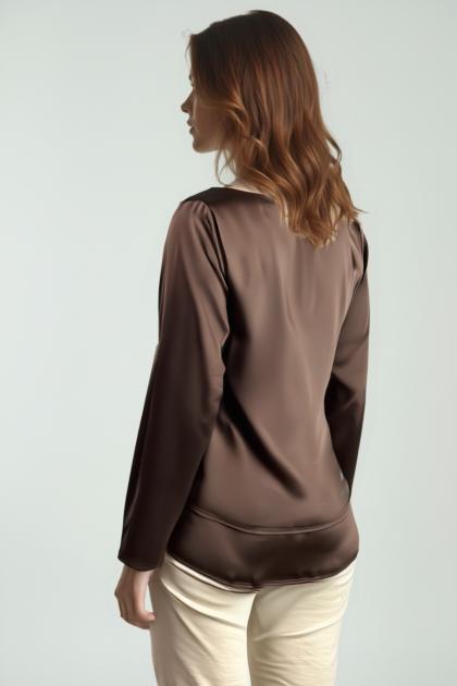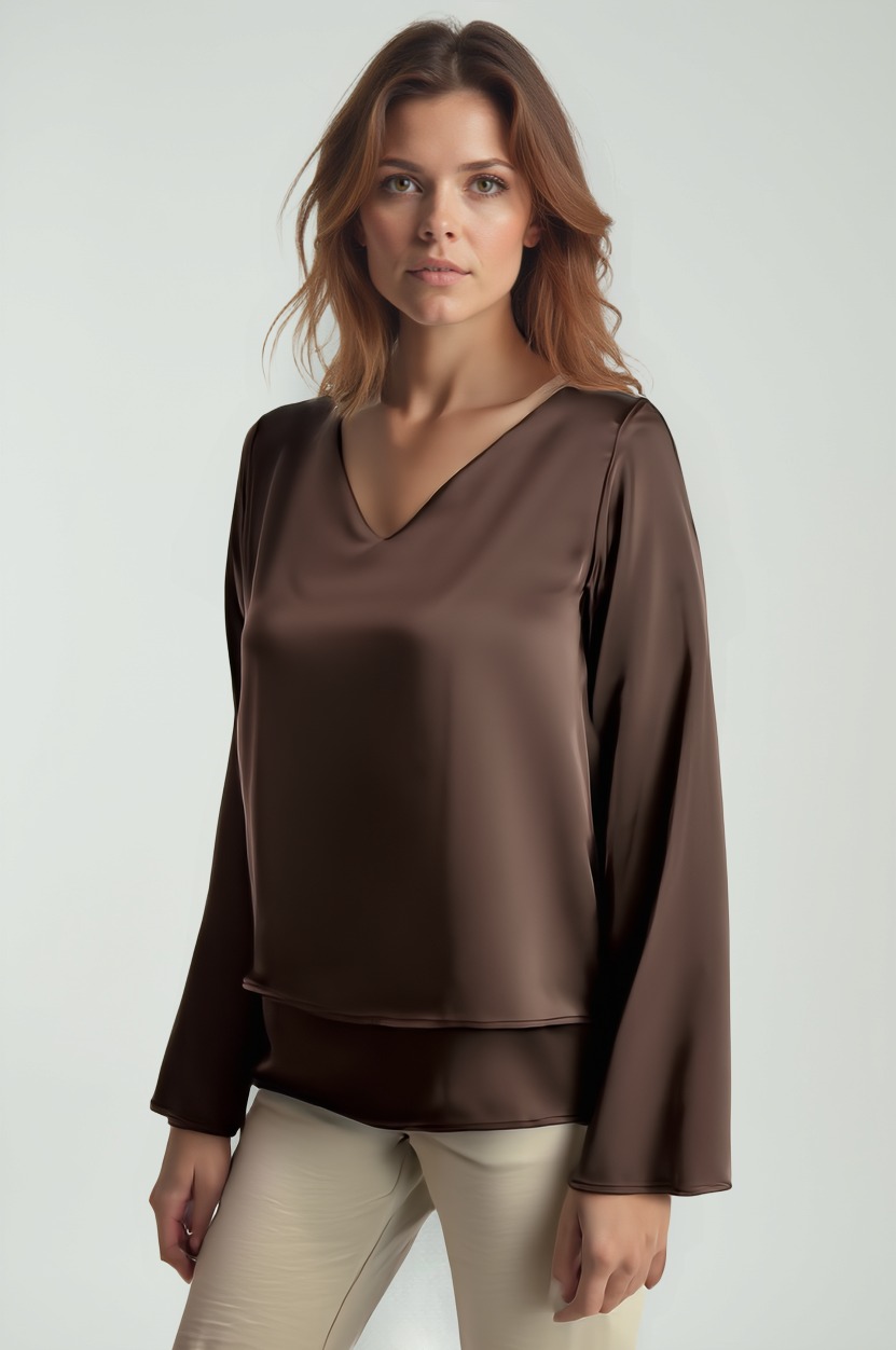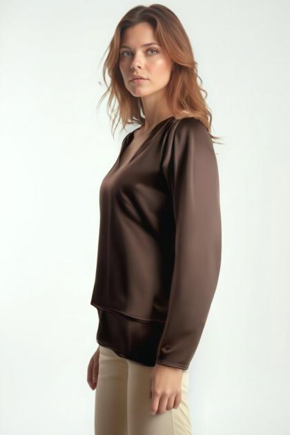 Matte satin blouse with flounce, elegant and fluid, perfect for a sophisticated and feminine look.