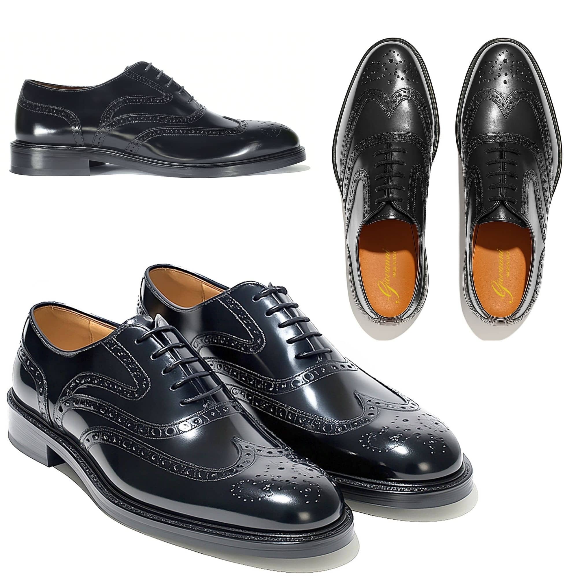 These classic men's brogues are expertly crafted in premium black polished leather, featuring intricate wingtip perforations and refined broguing along the seams. The dominant black shade imparts a mood of sophistication, timelessness, and subtle authority—ideal for making a statement in any refined setting. Designed with a traditional closed lacing system, these shoes exude sartorial prestige and ensure a secure, customizable fit. Perfect for formal occasions, business attire, and elegant evenings out, the versatile style transitions effortlessly from the boardroom to upscale social events. The ideal customer is a discerning male professional aged 25-55, with a taste for heritage craftsmanship, luxury, and understated detail. Suited best to temperate or cool climates owing to the leather construction, these shoes belong to the premium segment and evoke a modern-classic appeal. Notable for their meticulously hand-stitched welt and artisanal finishing, the silhouette is structured, with a slightly elongated toe lending a tailored, sleek impression. Durability is ensured by robust soles and superior materials, destined to last through years of regular wear.