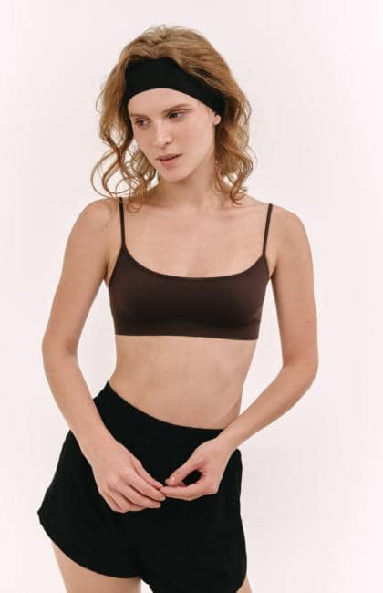 100% Made in Italy basic top with round neckline and thin straps, ideal for breasts that are not too abundant, without underwire or tight elastic it gives a fantastic second skin feeling and gives your breasts a natural but well marked shape. Perfect with bike shorts. Available in : Black, White, Coffee, Citrus Green, Crystal Azure, Moonstone, Chocolate Kiss, Royal Ruby