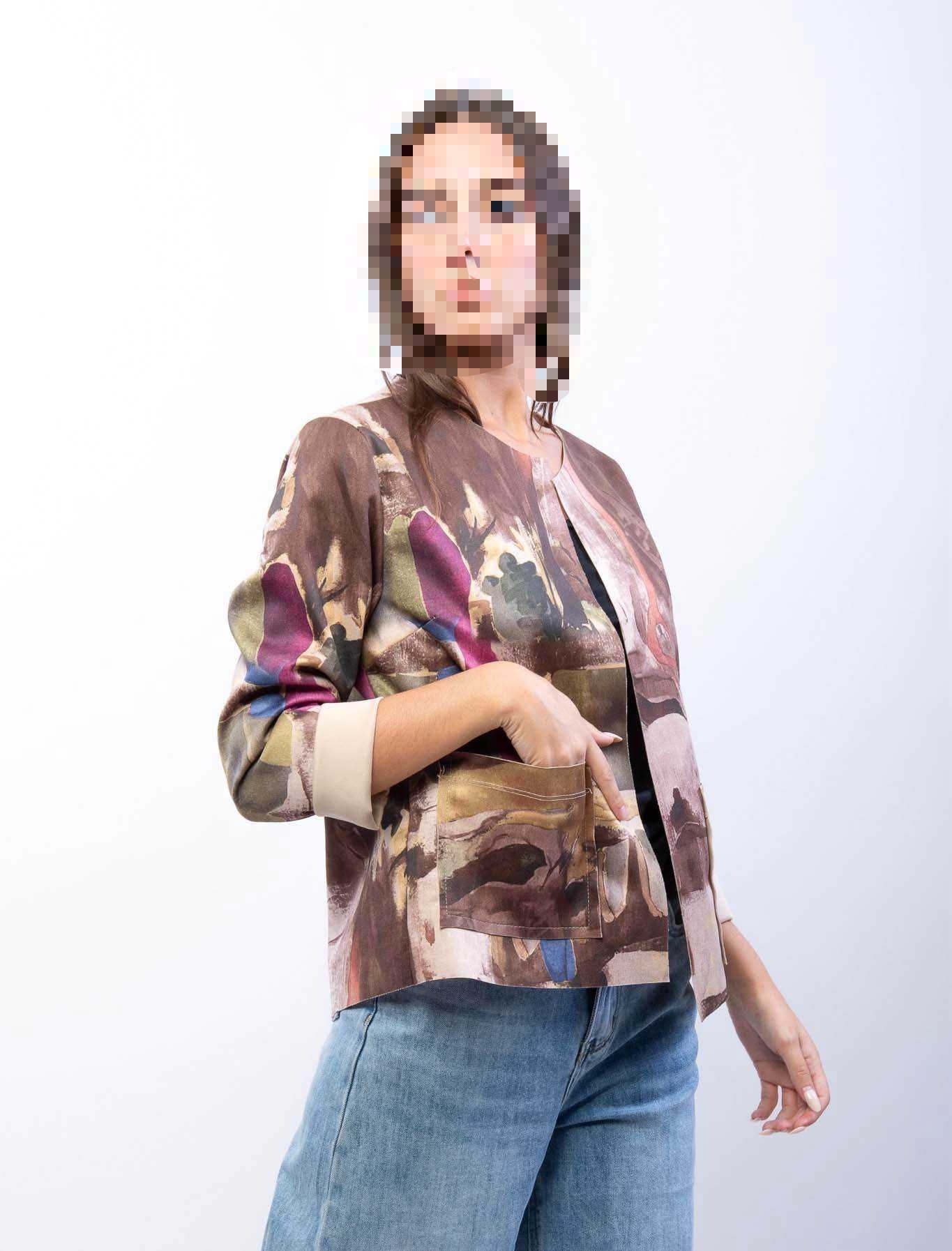 Polyester jacket made in Italy, with a typical Italian landscape motif printed with an oil painting effect.