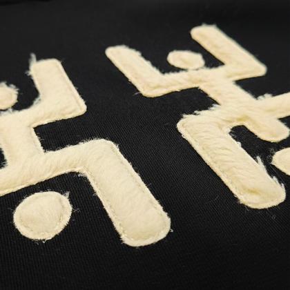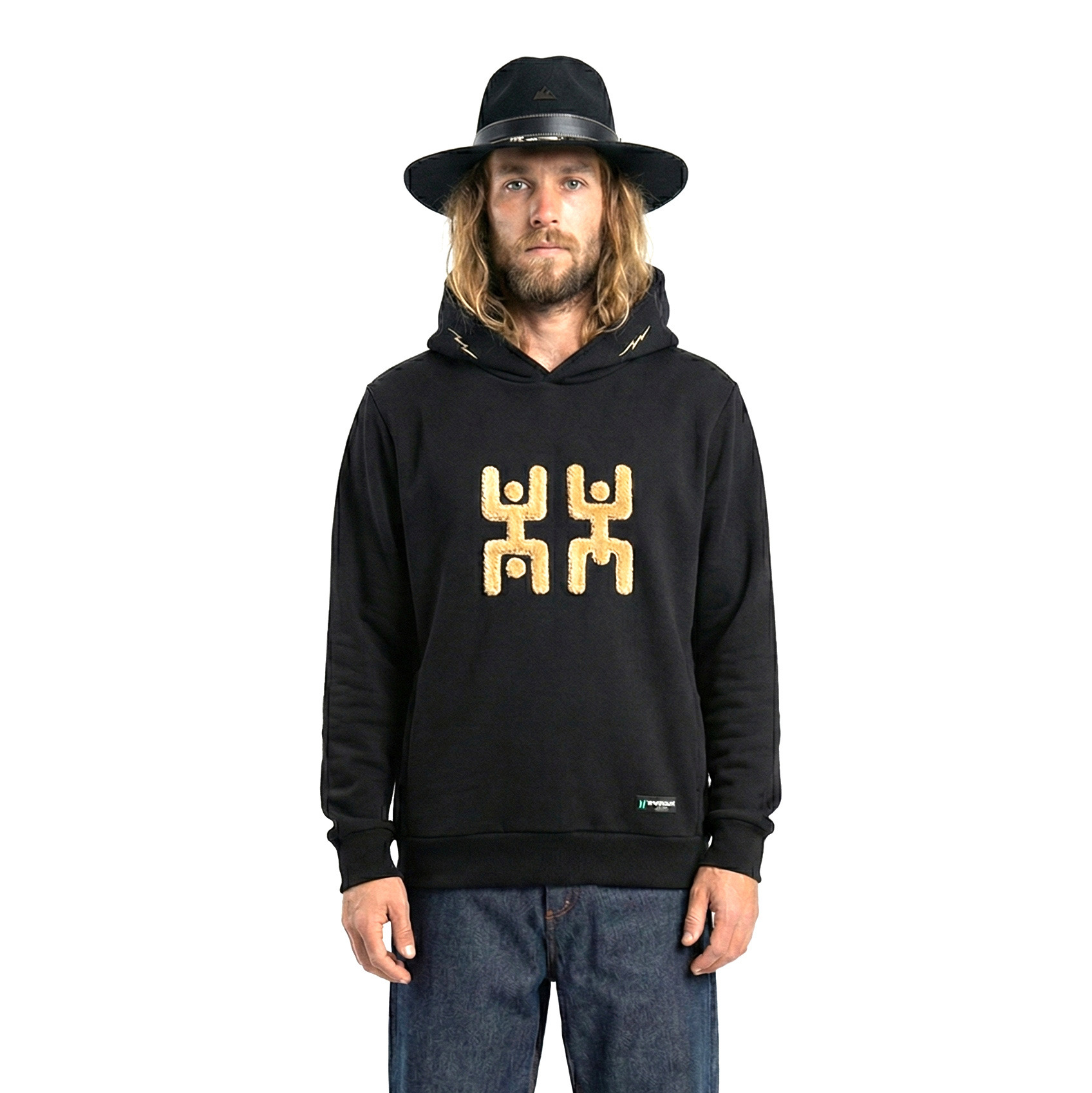 Origin unisex sweatshirt, heavy men's/women's, lightning bolts embroidered on the hood, men's and women's prayers in mixed wool teddy bear fur on the chest. High quality entirely made in Italy from yarn to packaging, very soft and warm fabric 75% cotton 25% polyester medium fit.