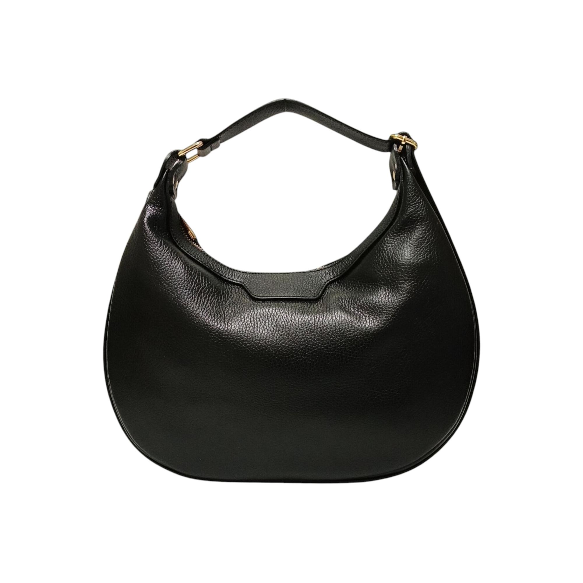 LEATHER BAGZip closureSingle adjustable shoulder strapGold accessoriesDIMENSIONS:34.5cm×24cm×6cm(width×height×depth)INTERIORFabric liningCell phone pocketZip pocketSingle compartmentWeight:0.66kgMade in Italy