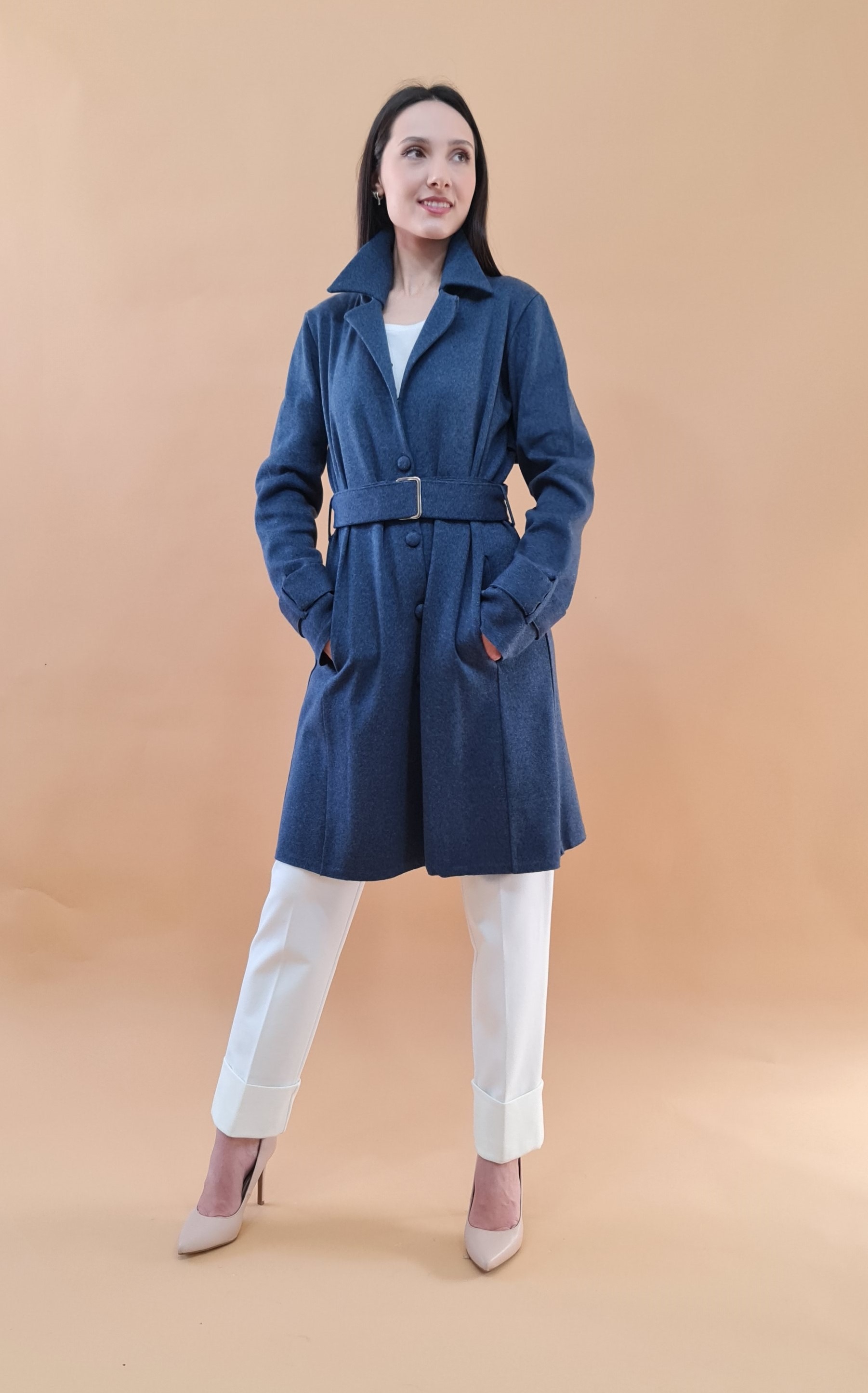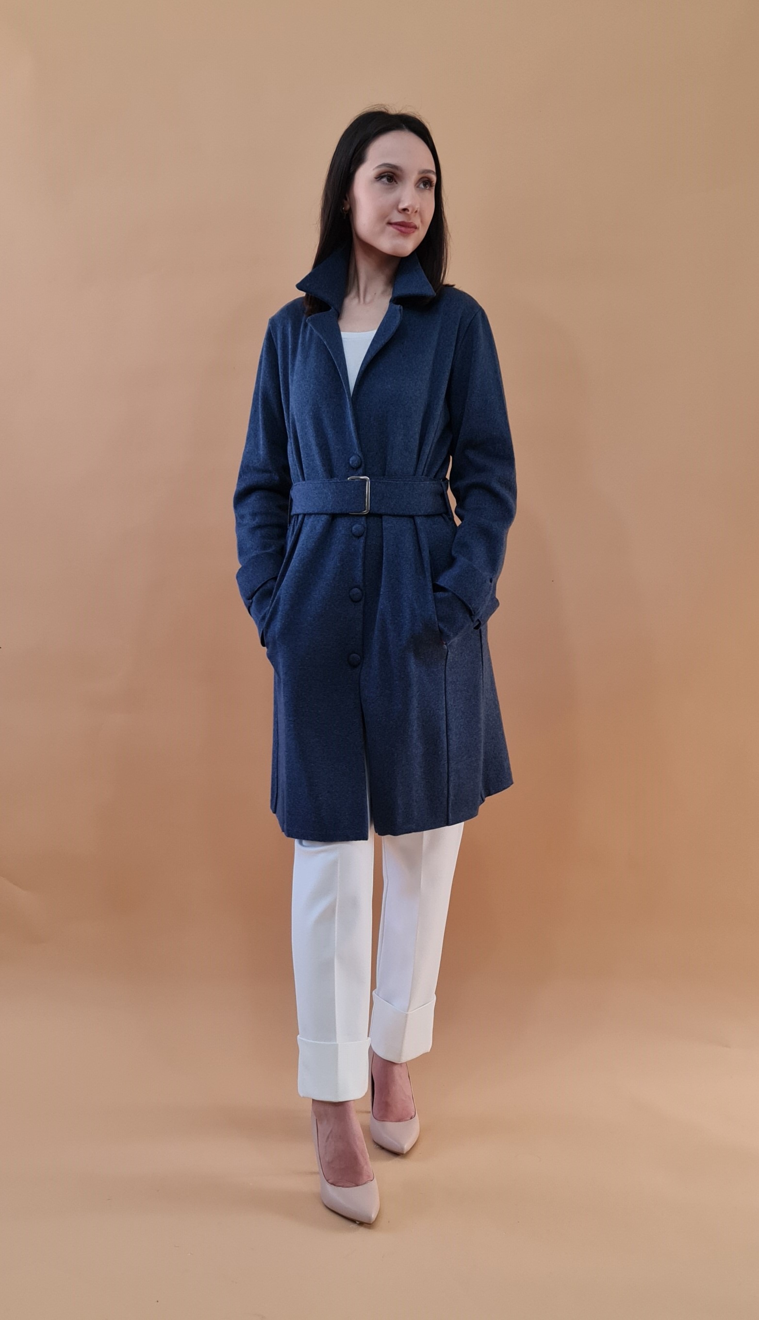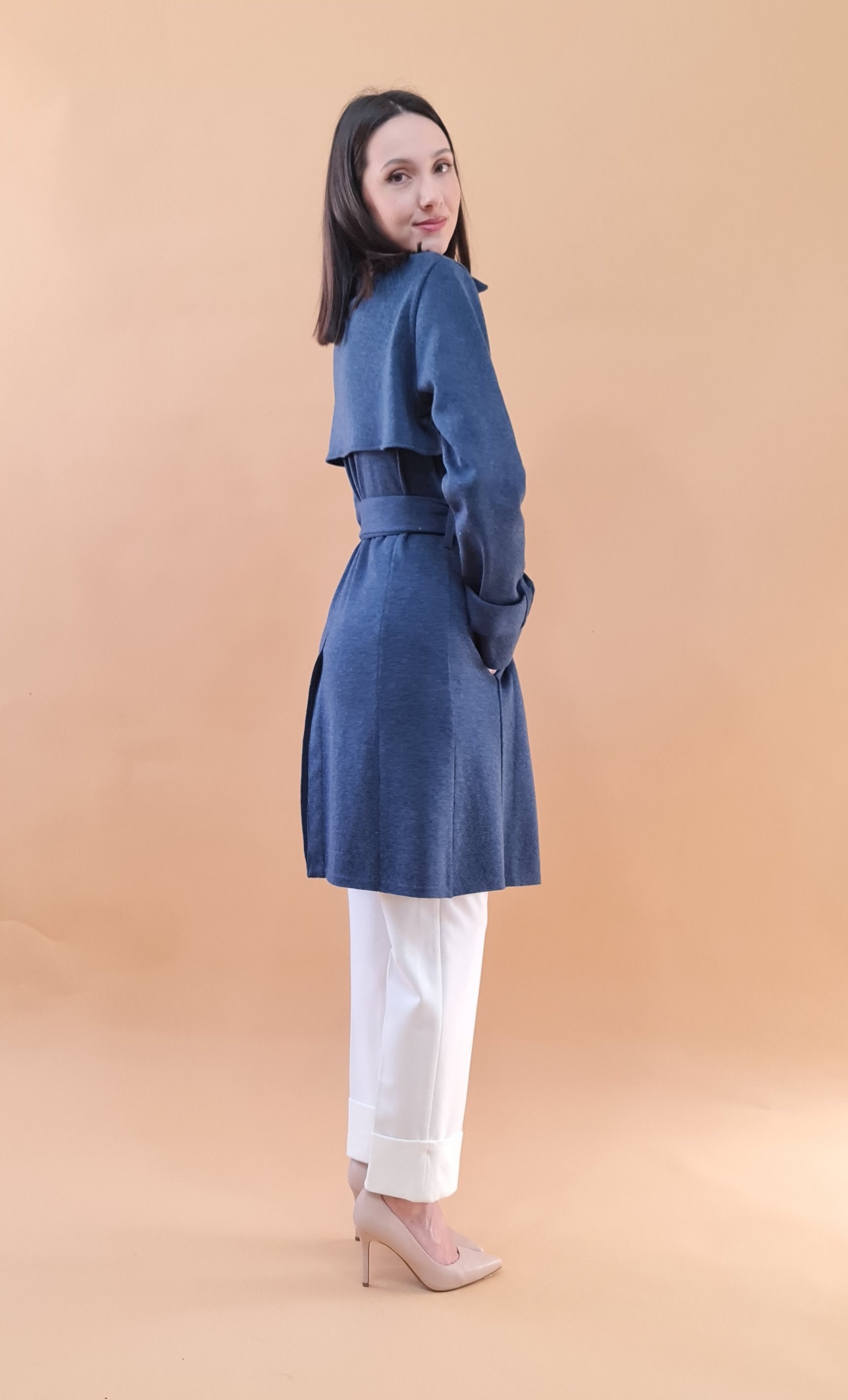 Add elegance and sustainability to your look with our Long Organic Cotton Trench Coat. Handcrafted and tailored in Italy, this trench coat features a classic design with slip pockets, half-belt cuffs, and a touch of refinement with four covered buttons. Featuring an adjustable waist belt and 100% organic cotton, it combines timeless style with environmental responsibility. 100% organic cotton. Handcrafted and tailored in Italy. Sample color: jeans. Hand wash at a maximum temperature of 30°C, do not tumble dry.
