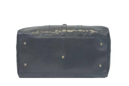Stunning travel bag with handles and shoulder strap in leather. Closure with front buckle and zip Inside lined with three pockets, one with zip. Pendant in leather. Accessories in antique gold. The color of the inner lining may vary.